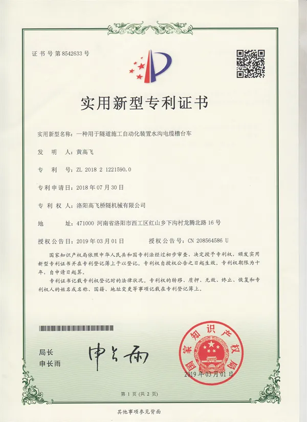 Luoyang Gaofei Bridges and Tunnels Machinery Co., LTD., was established in 2014, which located in Luoyang Industrial Park, Xigong District, Luoyang, is a modern enterprise specializing in the production of complete sets of bridge and tunnel equipment, integrating design, research and development, production, sales, installation and service.